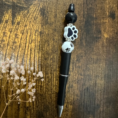 Paw Ballpoint Black Ink Pen with Silicone Beads
