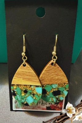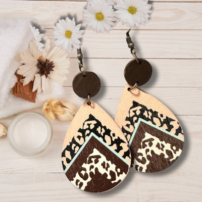 Boho Floral Teardrop Wooden Earrings