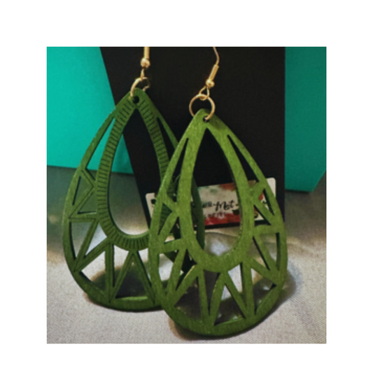 Green Wooden Hollow Water Drop Shaped Dangle Earrings For Women