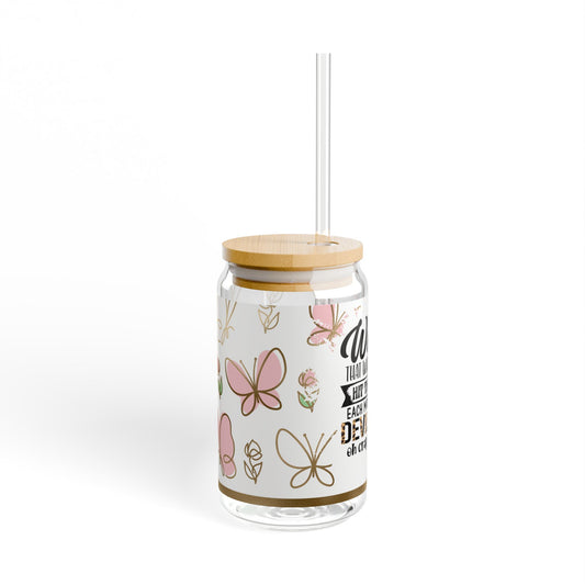 Funny Woman's Sipper Glass, Cute Butterfly Design, 16oz Drinkware, Gift for Mom, Funny Coffee Cup, Humor Mug