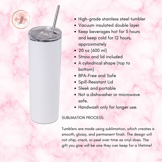 Make every sip special with our Personalized Tumbler Collection. Customize your tumbler with names or messages for the perfect gift or personal treat. Durable, stylish, and made to stand out—designed just for you.