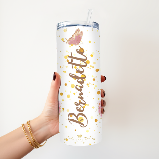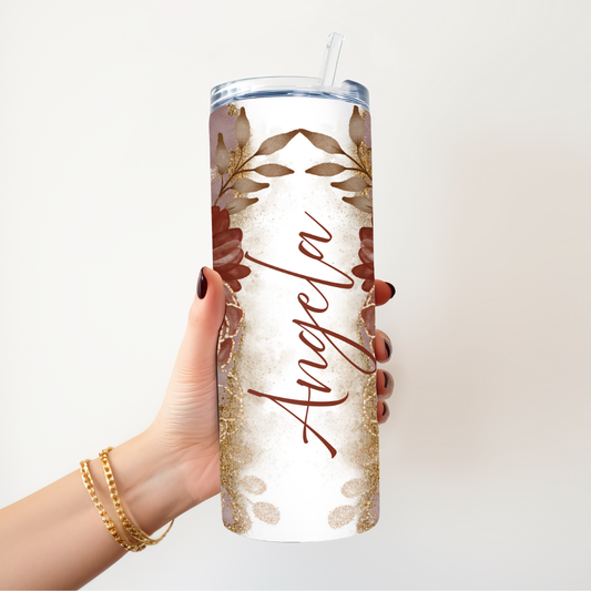Personalized Glitter Floral Tumbler – Custom Name 20oz Stainless Steel